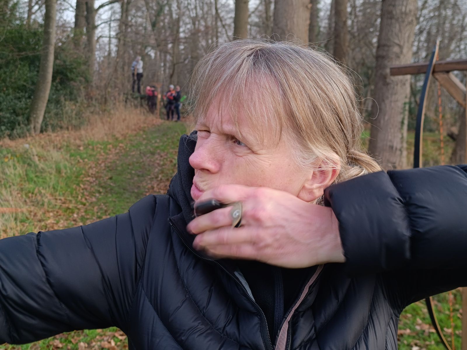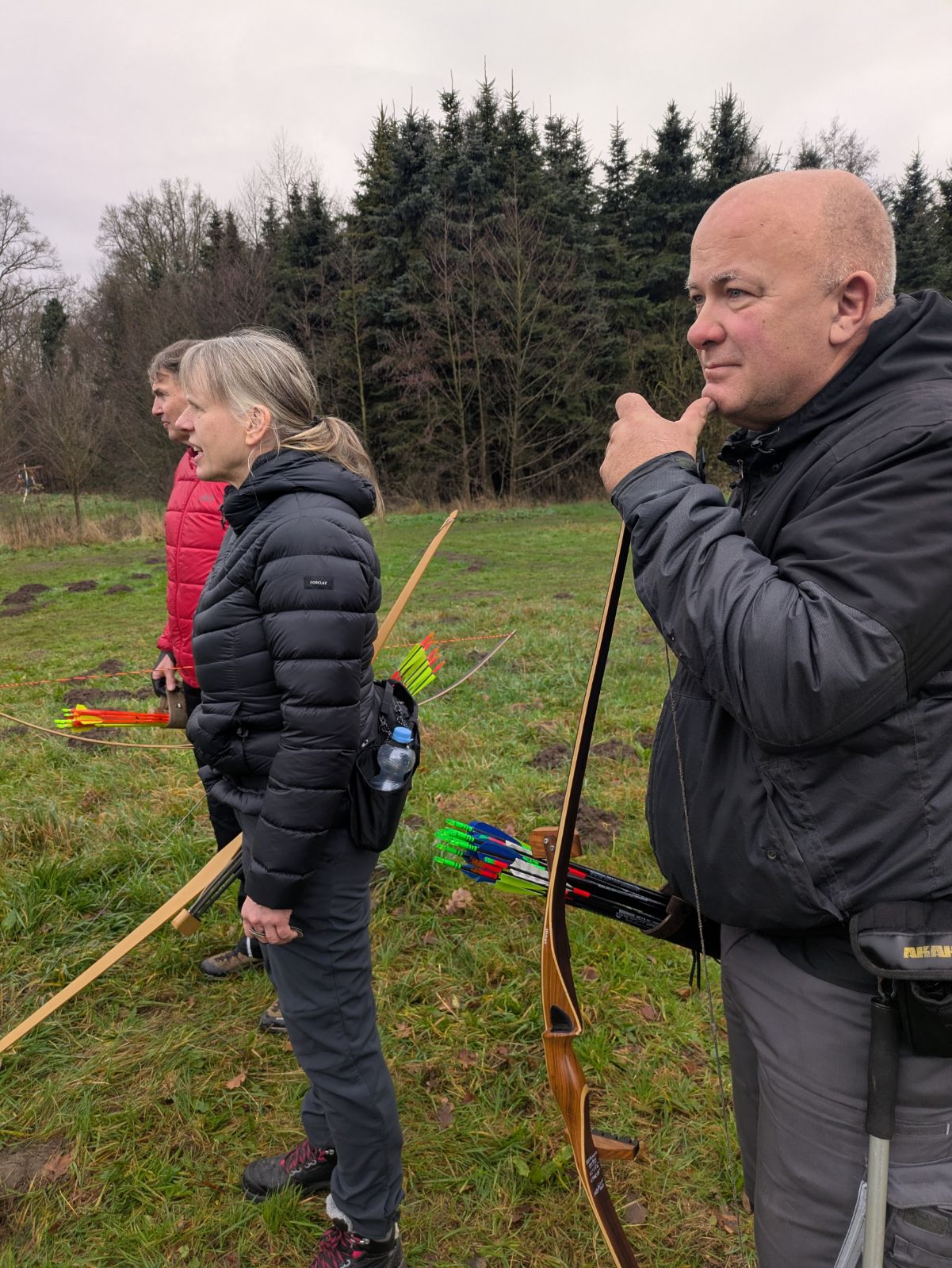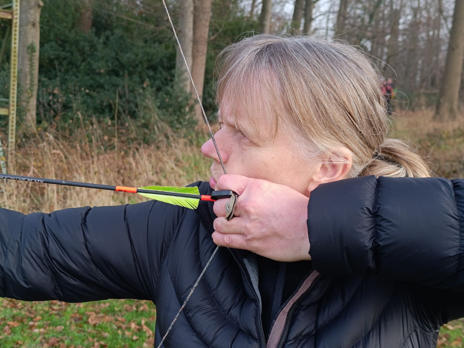 Nach einem gemeinsamen Frühstück wurde, bei verhältnismäßig milden Temperaturen für die Jahreszeit, in dem schön gestellten Parcours erst eine 3-Pfeil Runde absolviert. Nach einem gemeinsamen Mittagessen ging es für alle zeitgleich in die Hunter-Runde.