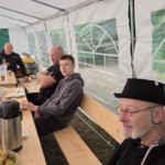Beim Abendessen hatte wohl jemand den Teller nicht ordnungsgemäß geleert, denn um 20 Uhr fing es an zu regnen. Danach fing es an zu schütten. Dann kam das Gewitter, das anschließend in einen stundenlangen Landregen überging. Da wir alle gemütlich im großen Zelt Platz hatten haben wir die Zeit genutzt um Schrauben zu sortieren – natürlich auf Zeit.