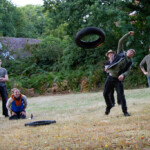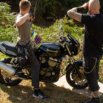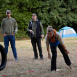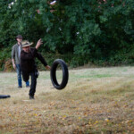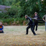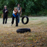 Wieder zurück gab es Biker-Spiele am Duellbaum und beim Reifen rollen.